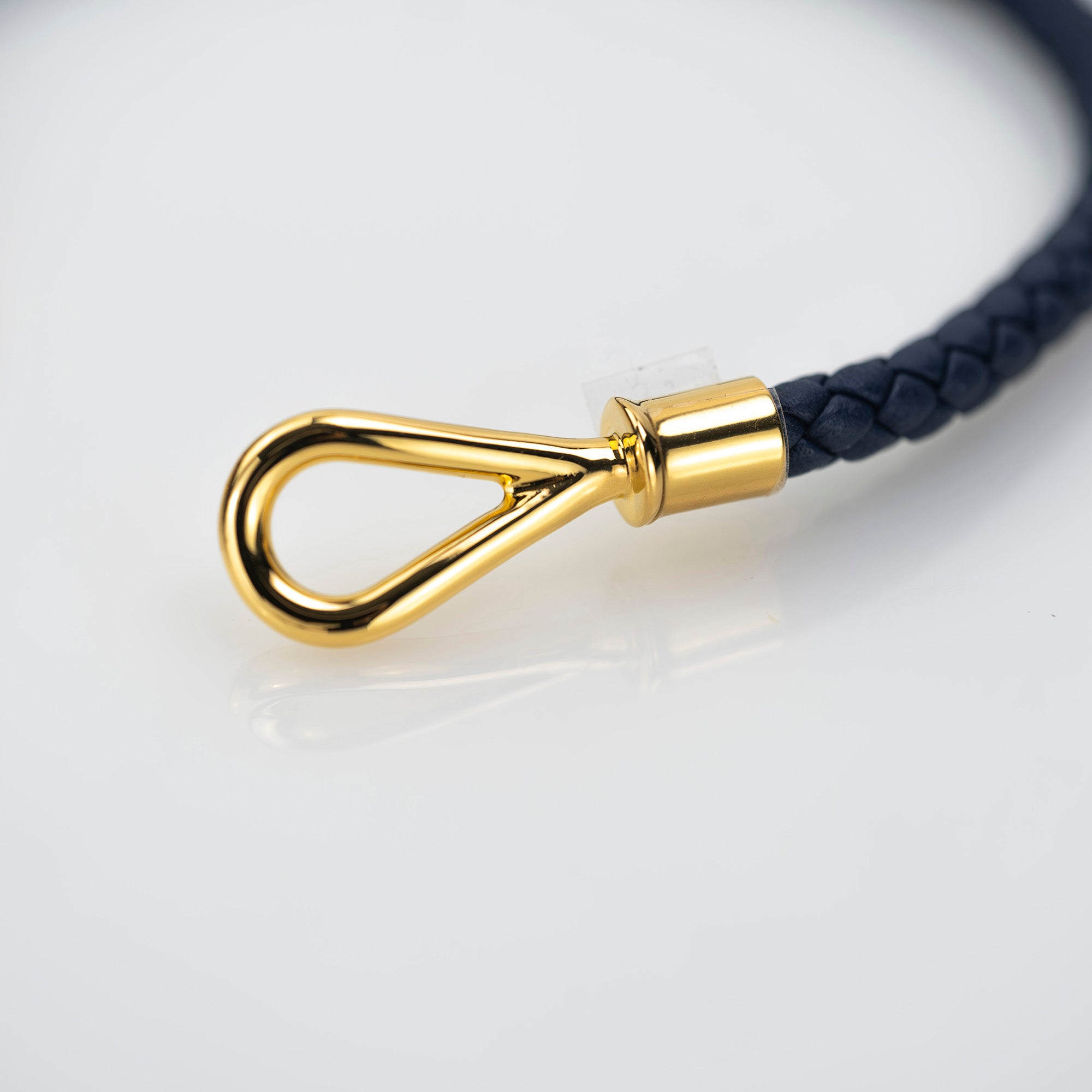 Hermes Jumbo H Leather Bracelet Navy x Gold Men's Accessory Good Condition
