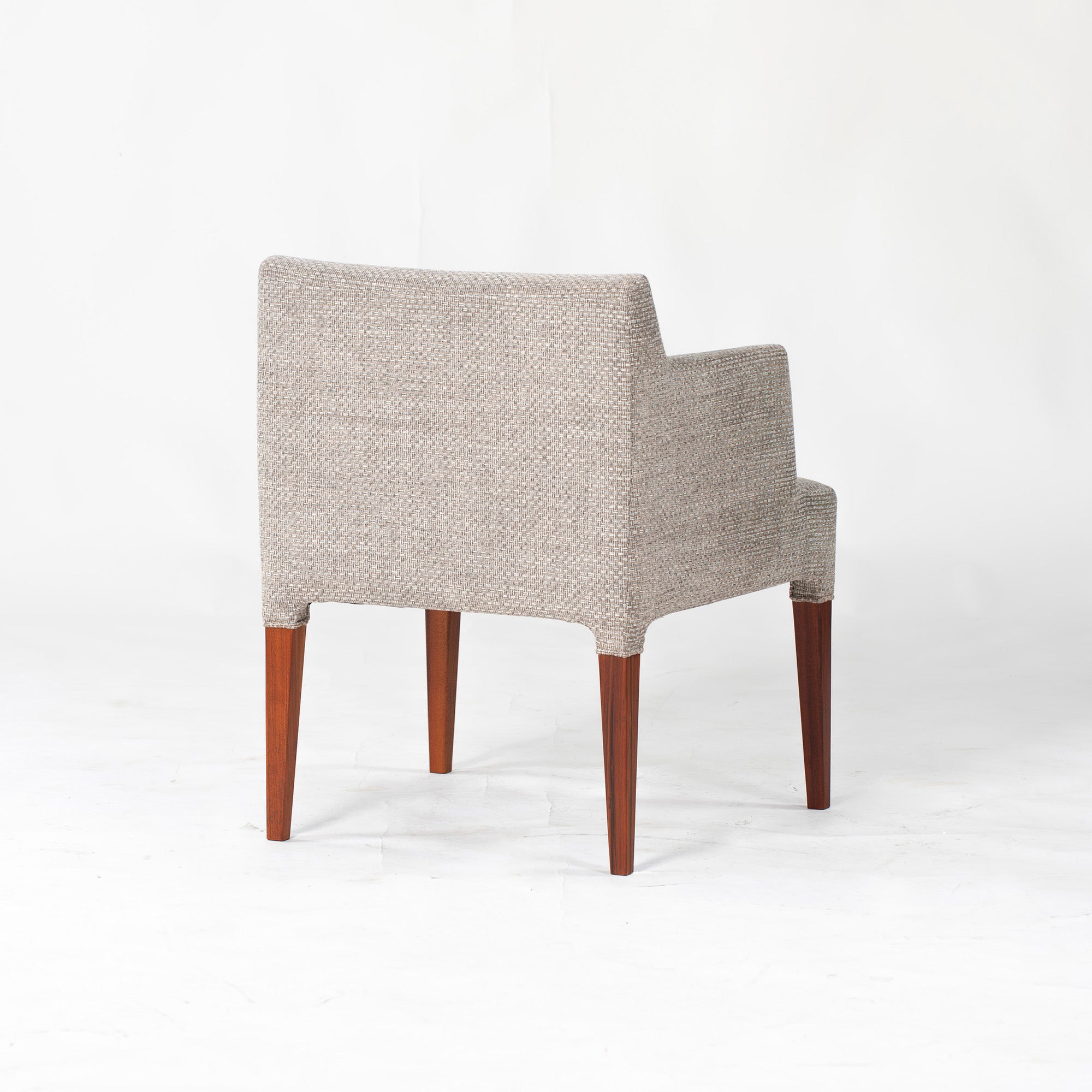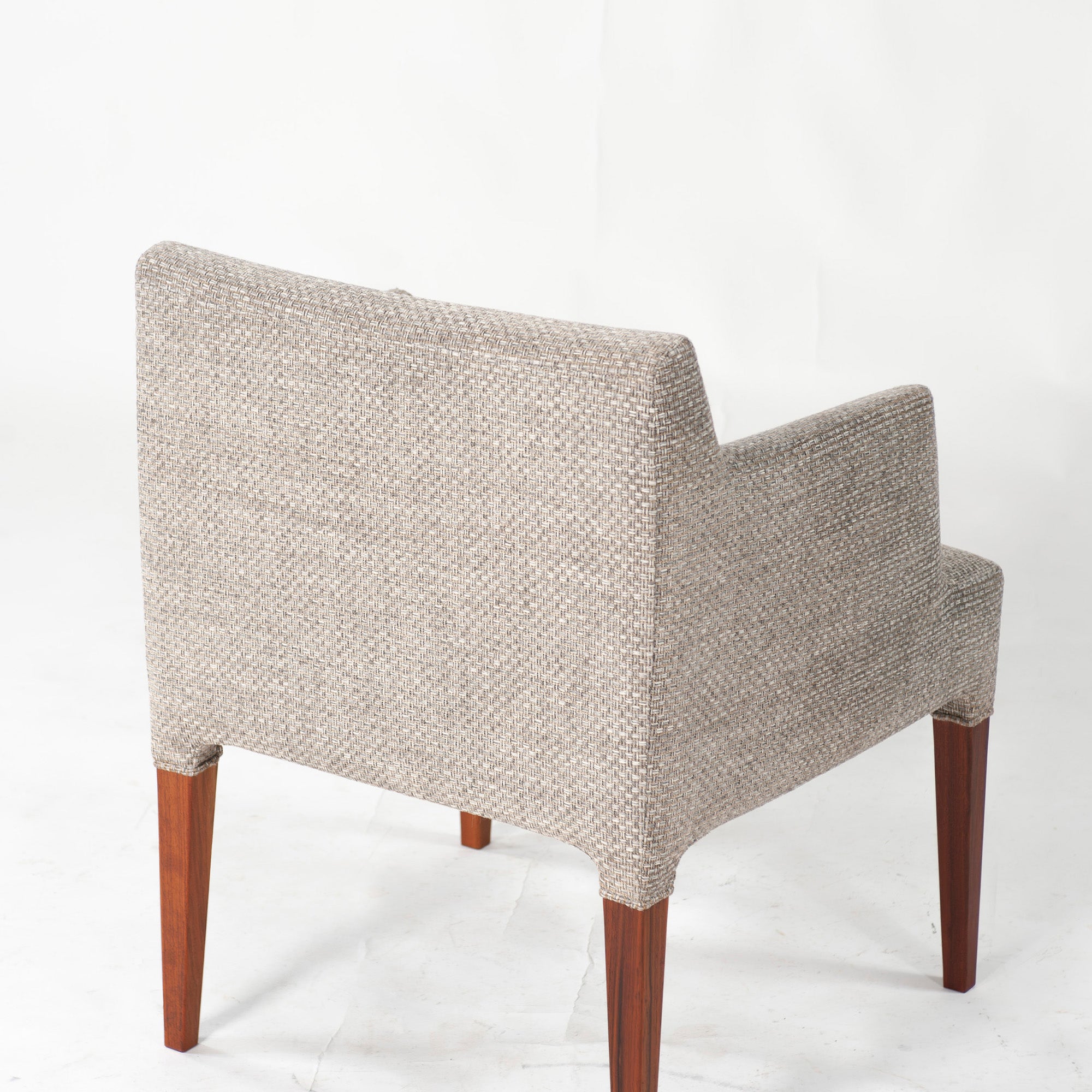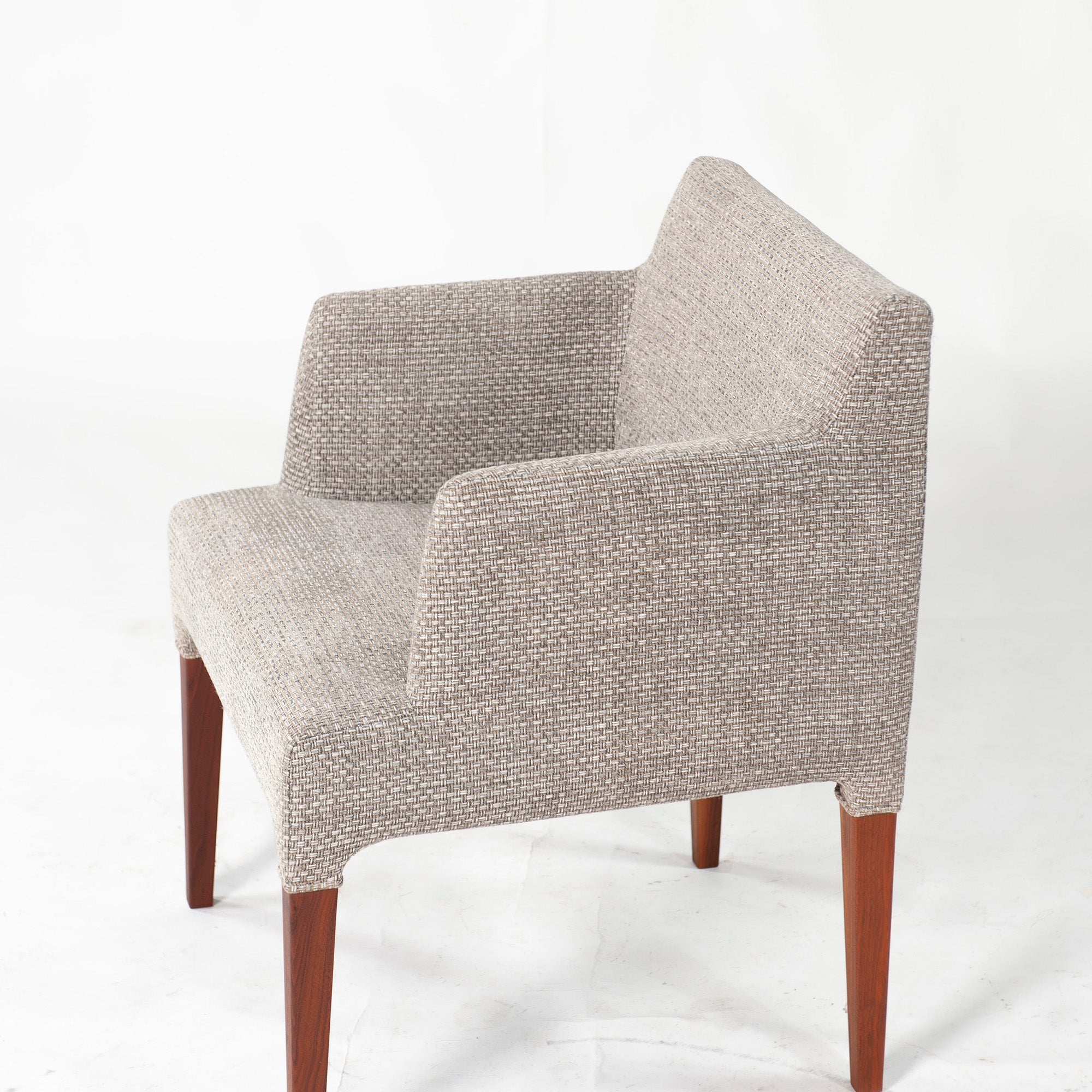 Ritzwell C-LINE armchairs in walnut (2), oil-finished with fabric upholstery. Simple, Scandinavian modern design.