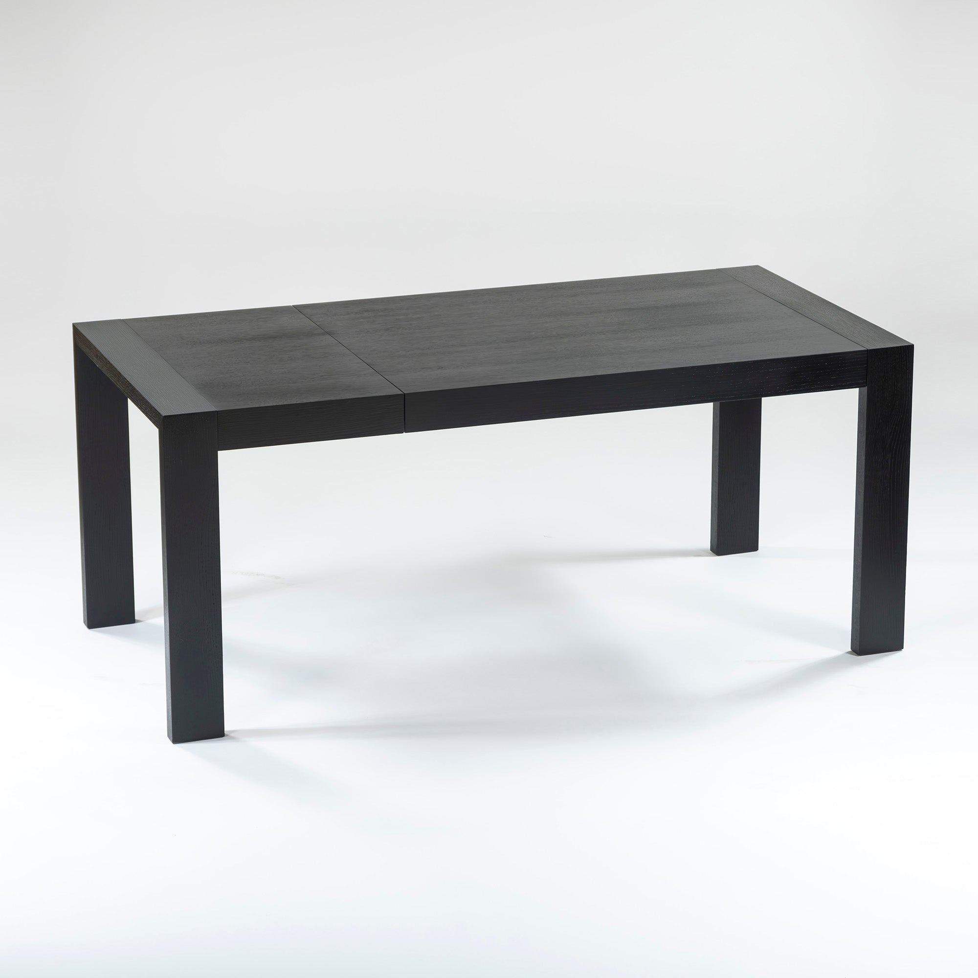 This is the CECILIO extension dining table, which features a calm, chic black color.