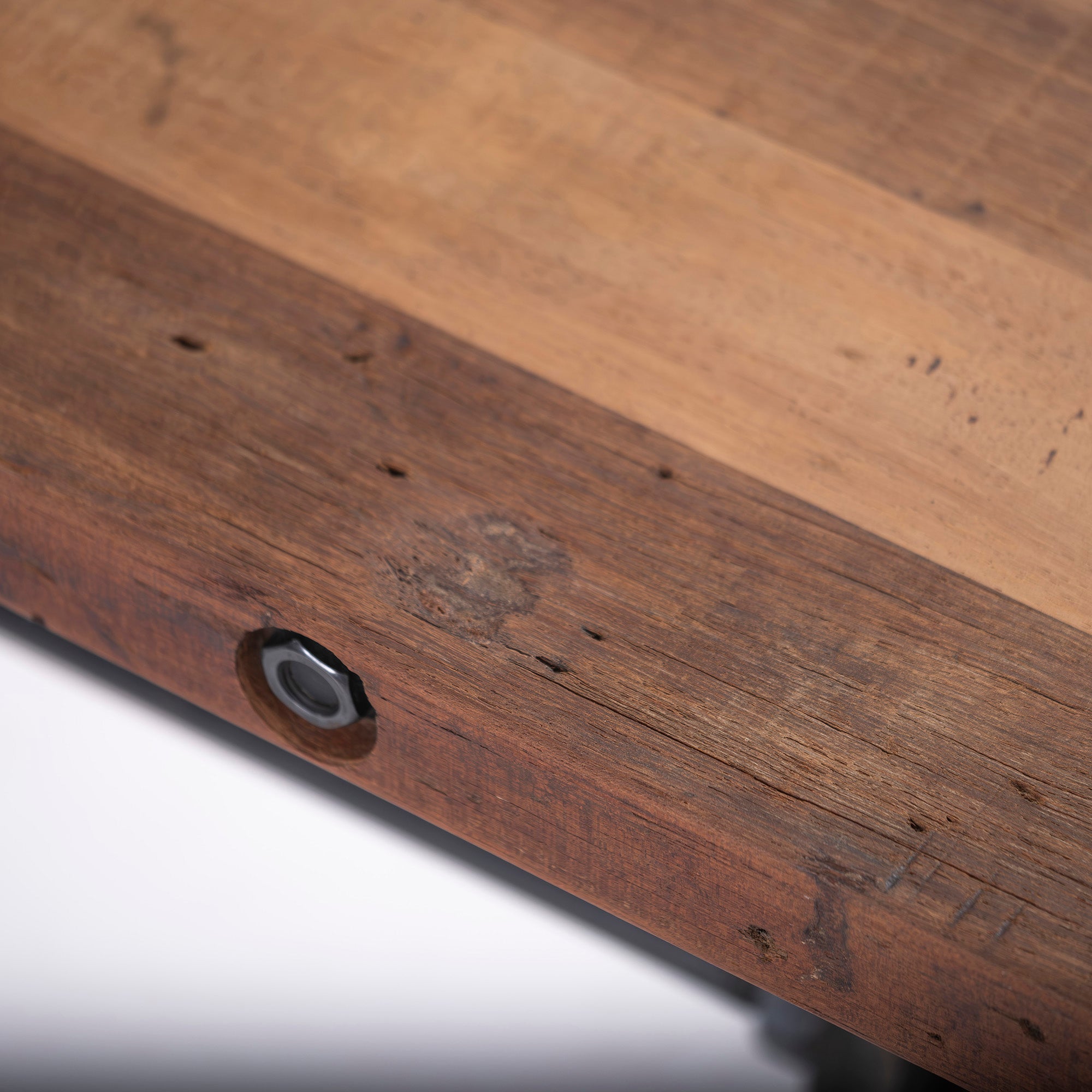 This is a Baton dining bench made from a combination of old pine wood and iron.