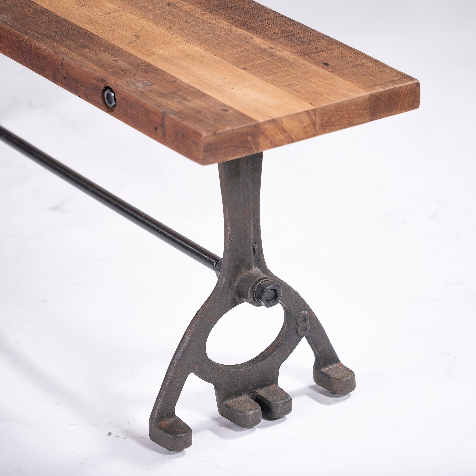 Dining bench CRASH GATE DISTRICT EIGHT Baton bench made of old pine wood and iron