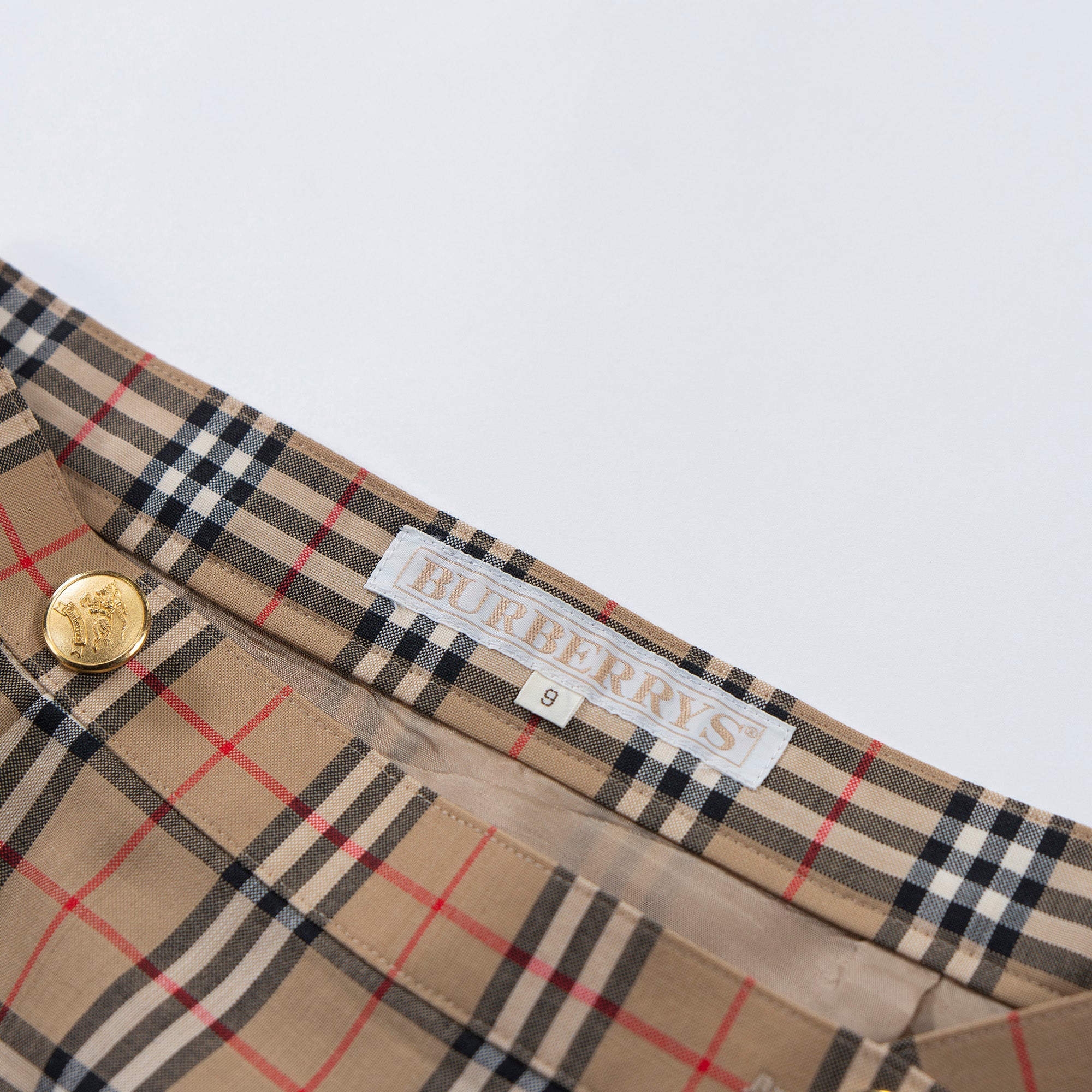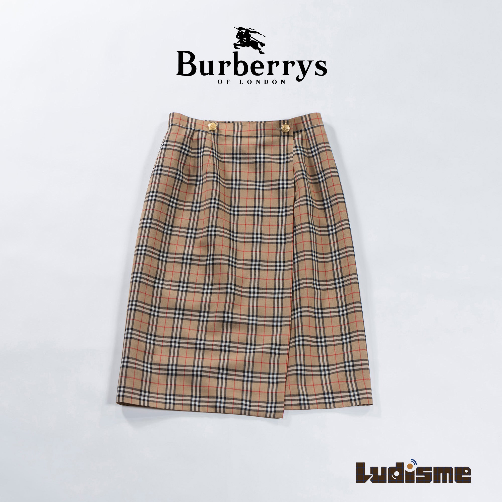 Used Burberry wrap skirt in a Burberry check or Nova check pattern. 100% wool. This wrap skirt is a Burberry women's fashion item from the 1990s.